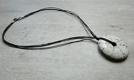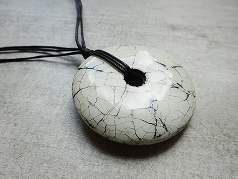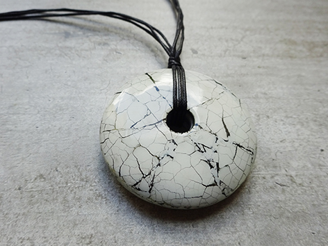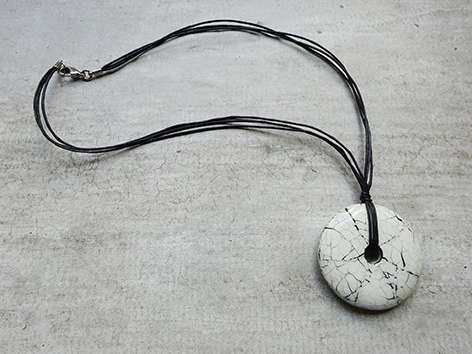 Ketting van zwart dubbel koord met een creatieve ronde hanger van eierschaal in kunsthars